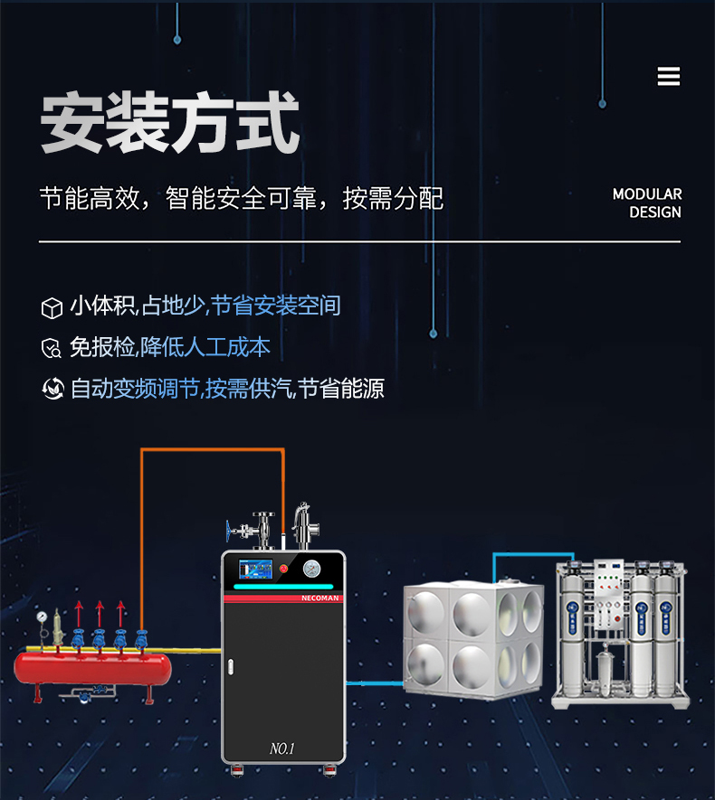 積木式自由組合,按需供氣;蒸汽量:6kg至6T;幾何容積小于30L,無需報檢;獨特汽水分離器蒸汽干度高達99%;溫度、壓力、可定制,更多參數(shù)可致電15323300918...
