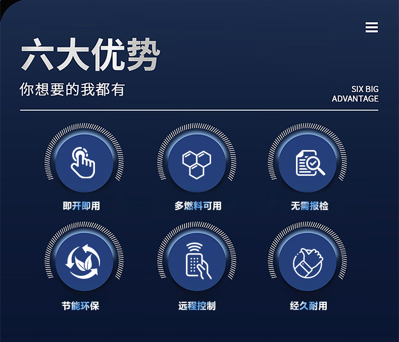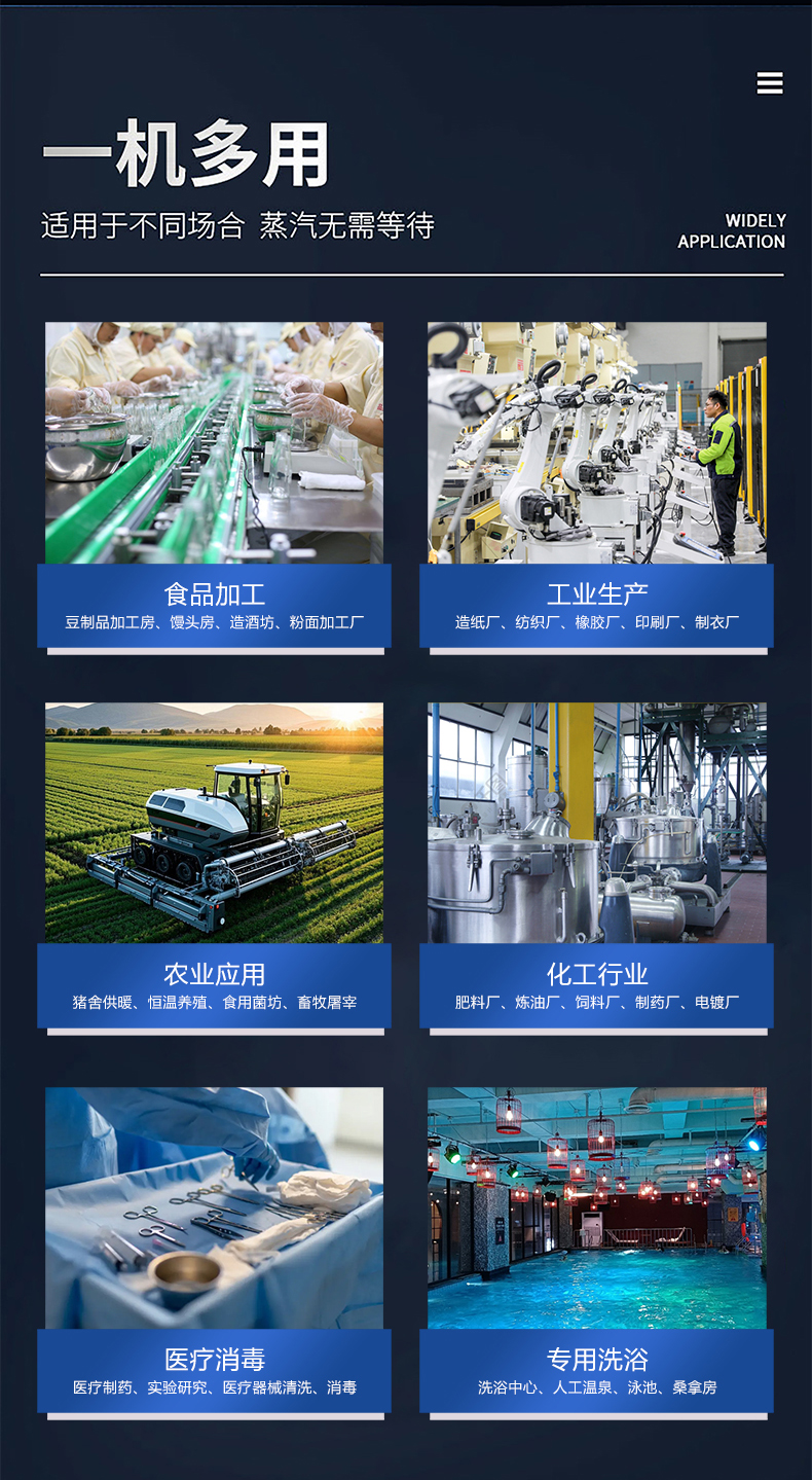 蒸汽量:6kg至6T;適用燃料:天然氣、油、生物顆粒;幾何容積<30L,免監檢;大爐門設計,可燃木塊等木質燃料,排煙溫度低、搭配多回程蛇形設計,壽命長,自主研發預制板結構,節省燃料;溫度、壓力、可定制,更多參數可致電15323300918...